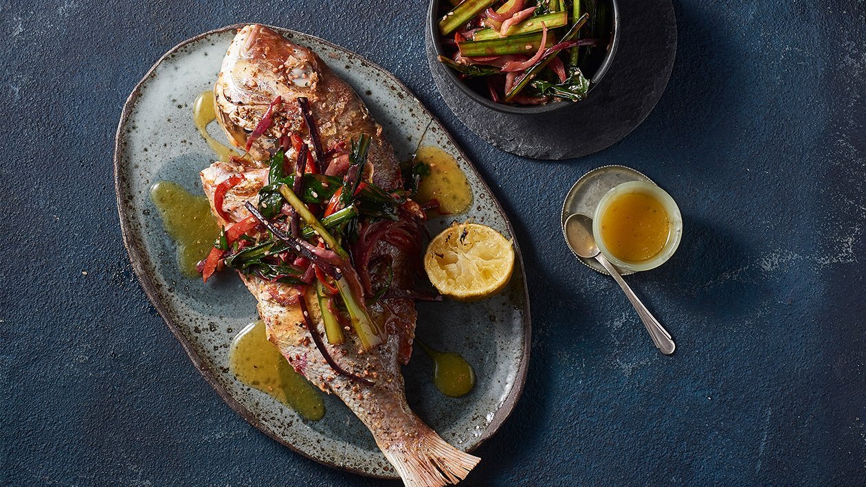 سمك المرجان المخبوز مع كاري الليمون الصيني